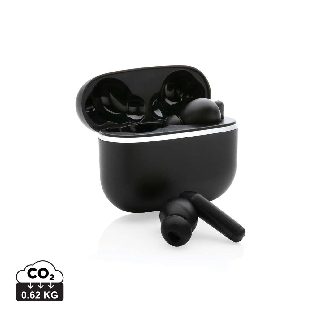 Auricolari true wireless di nuova generazione. Gli auricolari e la custodia di ricarica sono realizzati con ABS riciclato certificato RCS (Recycled Claim Standard). Contenuto totale riciclato: 59% in base al peso totale dell'articolo. La certificazione RCS garantisce una filiera completamente certificata dei materiali riciclati. Gli auricolari sono dotati di una custodia di ricarica compatta da 400 mAh che ti consente di caricare e portare gli auricolari ovunque tu vada. La tecnologia BT 5.3 garantisce l'accoppiamento automatico senza problemi e una connessione stabile. Gli auricolari hanno una batteria da 40 mAh che consente un tempo di riproduzione fino a 4 ore e possono essere ricaricati in 1,5 ore nella custodia di ricarica. DIstanza operativa fino a 10 metri. Include cavo di ricarica di type C in TPE riciclato certificato GRS. Confezionato in scatola regalo FSC® mix. Articolo e accessori 100% senza PVC.