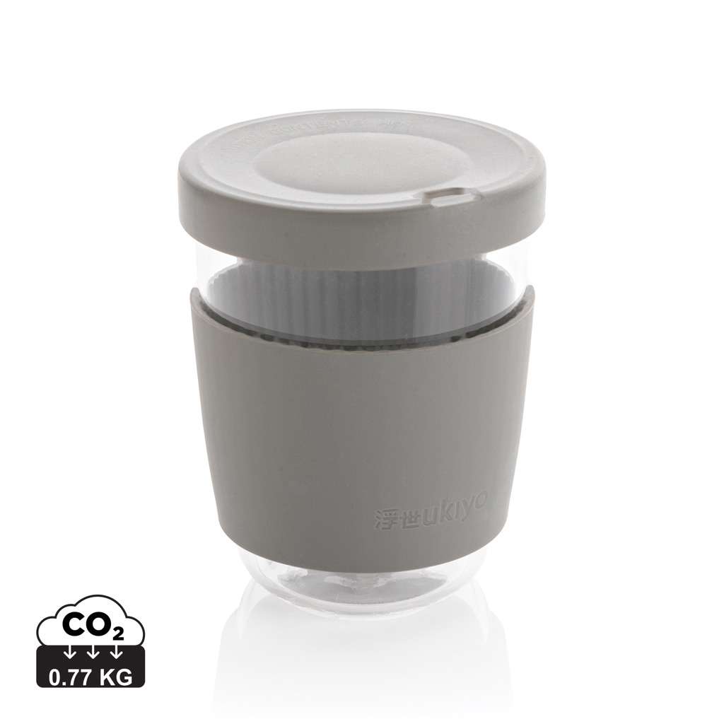 Goditi il tuo caffè al lavoro o a casa in questo bicchiere borosilicato Ukiyo con coperchio e manica in silicone. Ha una bella presa e una forma sottile. Un piccolo sfiato nel coperchio consente al vapore di fuoriuscire per prevenire l'accumulo di pressione. Senza BPA. Capacità 360 ml.