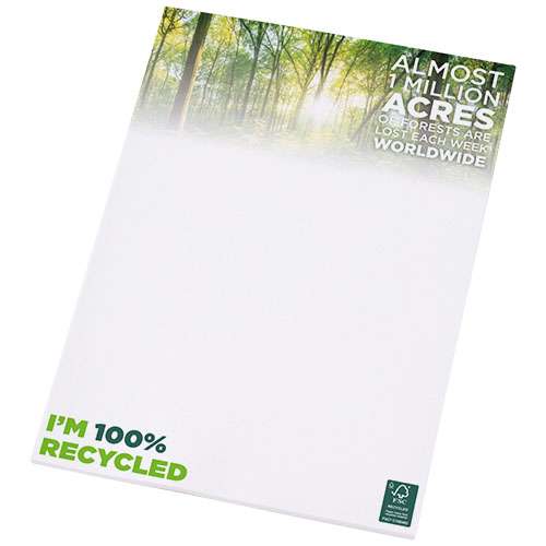 Blocco note A4 in carta riciclata Desk-Mate® in carta riciclata da 80 g/m2. Stampa full color disponibile su ciascun foglio. Disponibile in tre formati (25/50/100 fogli).