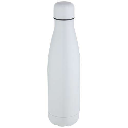 Borraccia in acciaio inossidabile a doppia parete con isolamento sottovuoto, con uno speciale rivestimento esterno che consente la stampa a sublimazione. L'isolamento in acciaio inossidabile mantiene le bevande calde o fredde per diverse ore. È caratterizzata da una base che si adatta alla maggior parte dei portabicchieri. Finitura lucida. Fornita in una confezione regalo in cartone riciclato. Capacità: 500 ml.