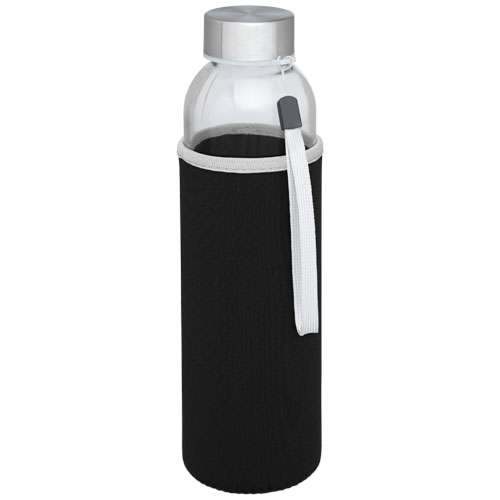 Borraccia in vetro a parete singola con tappo a vite. Il tappo è dotato di un cinturino per un facile trasporto. Custodia in neoprene. Perfetta per bevande fredde. Non congelare, non mettere nel microonde. Capacità di 500 ml. Fornito in confezione regalo.