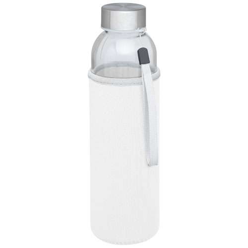 Borraccia in vetro a parete singola con tappo a vite. Il tappo è dotato di un cinturino per un facile trasporto. Custodia in neoprene. Perfetta per bevande fredde. Non congelare, non mettere nel microonde. Capacità di 500 ml. Fornito in confezione regalo.