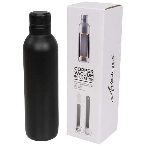 Struttura sottovuoto a doppia parete in acciaio inox con isolamento in rame che consente alle bevande di restare al fresco per 48 ore o al caldo per almeno 12 ore. La sua particolare struttura inoltre evita la formazione di condensa sulla superficie esterna. Rivestimento a polvere resistente e alla moda. Tappo a vite antisgocciolamento in acciaio inox. Capacità massima 510ml. Presentato in confezione regalo Avenue.