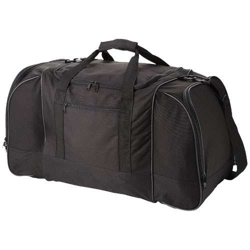 Borsa da viaggio con tracolla regolabile, ampie tasche laterali e tasca frontale.