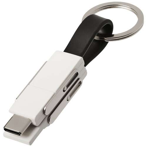 Un cavo 4-in-1 che copre tutte le esigenze di ricarica. Include un connettore USB type A, un Type-C e un connettore aggiuntivo 2-in-1, compatibile sia con dispositivi iOS che con Android. Utilizzabile sia per ricarica che per trasferimento dati. Fornito con anello portachiavi e dispone di magneti per un comodo trasporto.