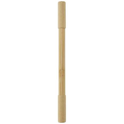 Il set di penne Samambu presenta una penna unica con due punte: 1 penna a sfera e 1 penna senza inchiostro. La parte senza inchiostro non richiede cartucce d'inchiostro o ricariche. La punta di grafite nera della penna è progettata per lasciare tracce visibili sulla superficie di scrittura. La scelta di una penna in bambù senza inchiostro favorisce pratiche più sostenibili e incoraggia l'utilizzo di materiali rinnovabili. La penna a sfera presenta inchiostro di colore nero, un pennino di 1,00 mm e una capacità di scrittura di 600 metri. Capacità di scrittura penna senza inchiostro: 1500 metri.Colore inchiostro: Black