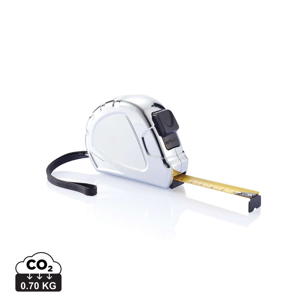 Struttura in ABS cromato con nastro giallo. Pulsante di stop e cinturino neri e clip da cintura in acciaio.