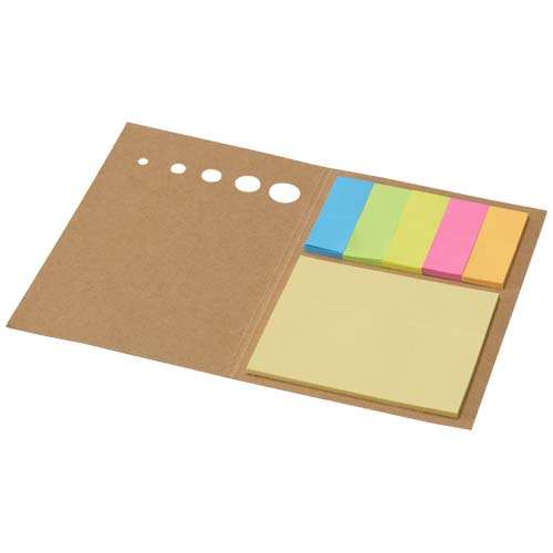 Il segnalibro in legno Freiji presenta 125 foglietti adesivi piccoli colorati (4,2 x 0,6 cm) e 25 foglietti adesivi grandi (4,2 x 4 cm) di colore giallo.