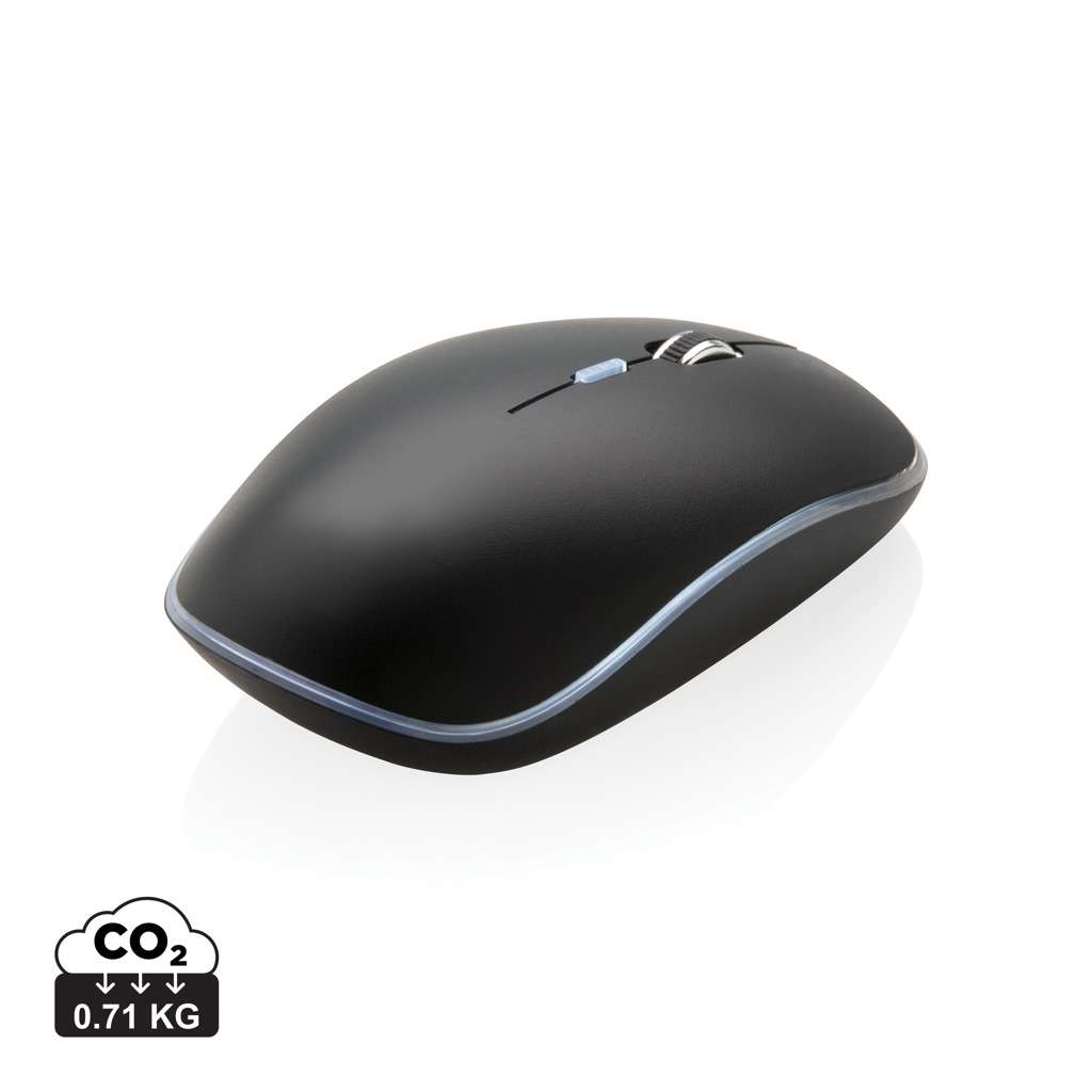 Mouse wireless dal design confortevole e con l'opzione del logo che si illumina incidendolo sul mouse per far meglio risaltare il tuo marchio. Include una batteria ricaricabile al litio da 300mAh che si ricarica in 3 ore. Velocità di connessione 125 HZ tramite chiave di sicurezza USB integrata. Dispone di tasto destro, tasto sinistro e rotellina centrale. La sensibilità del mouse può essere regolata a seconda delle preferenze d'utilizzo. Compatibile con le più recenti versioni di sistemi operativi Windows e Mac.