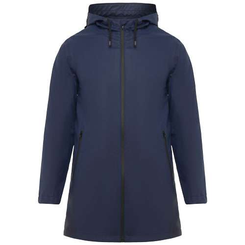 Giacca impermeabile. Cappuccio con visiera. Cerniere e cuciture termosaldate. Dettagli a contrasto di colore nero. Due tasche laterali con cerniera. Fessure sul retro del cappuccio. Etichetta rimovibile. Impermeabile. Il modello è alto 185 cm ed indossa una taglia M.
