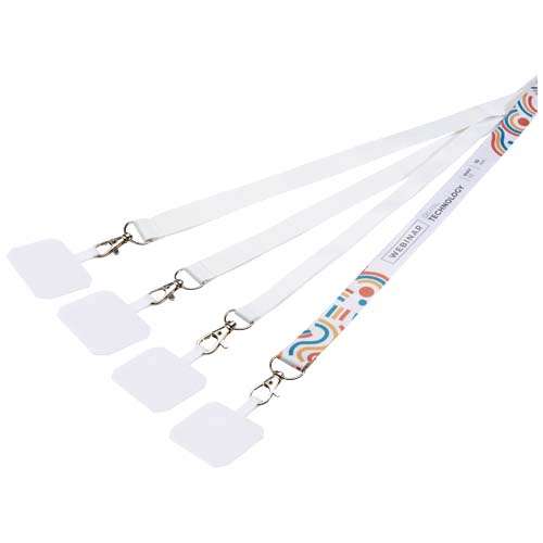 Grazie a questo pratico cordino con supporto è possibile tenere il telefono a portata di mano. Il cordino è realizzato in PET riciclato ed è disponibile con una stampa a sublimazione a colori su uno o su entrambi i lati. Per la stampa fronte/retro, è possibile scegliere tra l'opzione standard e su misura, in cui il design è allineato su entrambi i lati. Il cordino è disponibile in quattro larghezze: 10, 15, 20 e 25 mm.