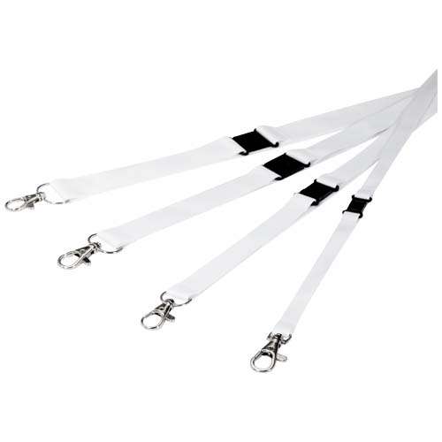 Cordino con stampa in sublimazione full color in PET riciclato con anello e fibbia con chiusura rimovibile per eliminare i rischi di soffocamento. Può contenere badge, carte d'identità o chiavi. Disponibile in 4 diverse larghezze: 10, 15, 20 e 25 mm.