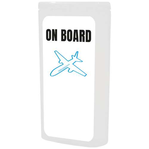 Il kit ideale per ogni viaggio. Con questo kit potrete rilassarvi e rinfrescarvi, per arrivare riposati a destinazione. Le dimensioni di questo kit consentono di portarlo sempre con voi. Contenuto: 1 spazzolino, 1 dentifricio, 1 tappi per orecchie, 2 salviettine rinfrescanti. Tutti i prodotti contenuti nei MyKit rispettano le norme Europee vigenti. I prezzi includono stampa all-over fronte e retro.