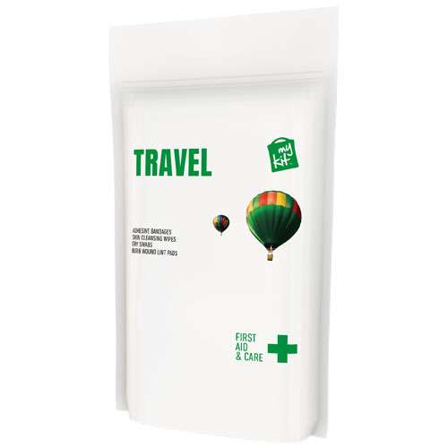 Il kit base per chi viaggia. Con questo kit sarete preparati ad ogni piccolo inconveniente durante i vostri viaggi. Contenuto: 12 cerotti resistenti all'acqua, 4 salviettine disinfettanti, 2 garze sterili, 2 garze per ustioni. Tutti i prodotti contenuti nei MyKit rispettano le norme Europee vigenti. I prezzi includono stampa all-over fronte e retro. Fornito in una custodia di carta.