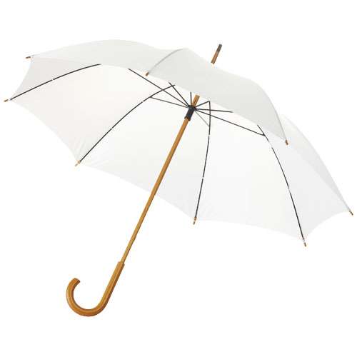 Ombrello 23" con manico in legno, asta in legno e stecche in metallo.