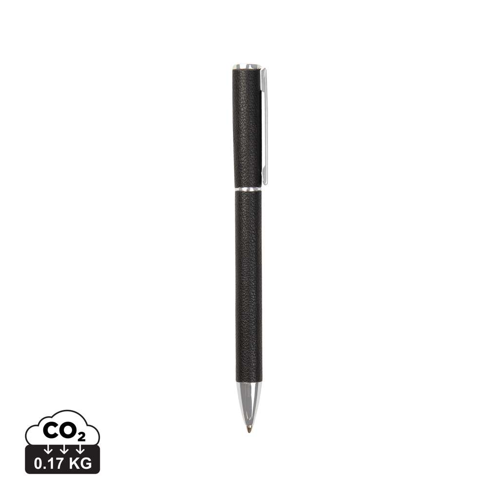 Elegante penna twist con inchiostro blu di qualità documentale che offre una lunghezza di scrittura di circa 1200 m e una larghezza di 1,0 mm. Realizzata con fusto in alluminio riciclato, componenti in ottone e in PU. La gamma Timo offre accessori da scrivania minimalisti realizzati con materiali riciclati certificati RCS, che combinano un design elegante con l'estetica moderna del luogo di lavoro. La certificazione RCS (Recycled Claim Standard) garantisce che l'intera catena di approvvigionamento dei materiali riciclati sia certificata. Il contenuto totale di materiale riciclato si basa sul peso totale del prodotto. Questo prodotto contiene il 27% di alluminio riciclato certificato RCS.