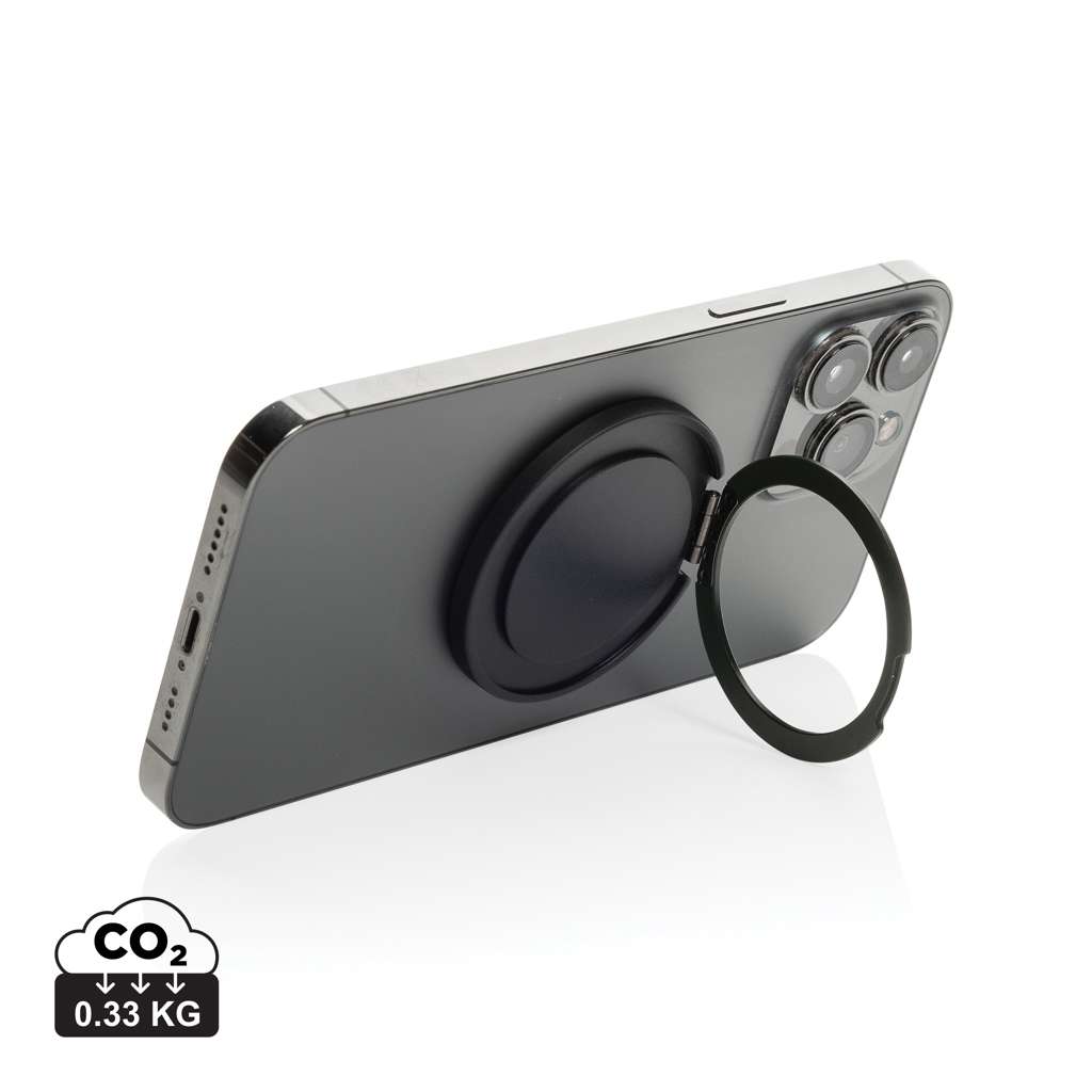 Supporto magnetico per telefono con magnete extra forte. Compatibile con tutti i telefoni dotati di magnete integrato (iPhone 12 e successivi). Per Android è compatibile con i telefoni che supportano QI2, mentre per gli altri telefoni è necessaria una custodia magnetica. L'anello in alluminio può essere ripiegato per trasformare il telefono in un supporto (sia orizzontale che verticale) o come porta telefono. Realizzato con plastica e alluminio riciclati certificati RCS (Recycled Claim Standard). Contenuto totale riciclato: 48% in base al peso totale dell'articolo. La certificazione RCS garantisce una catena di approvvigionamento dei materiali riciclati completamente certificata. Confezionato in un imballaggio misto FSC.