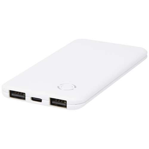 Power bank ultrasottile e leggero con capacità di 4000 mAh e doppie uscite USB A per ricaricare due dispositivi contemporaneamente. Il power bank dispone di indicatori a LED che mostrano il livello di energia rimanente. Ingresso Tipo-C: 5 V/2 A. Doppia uscita USB A: 5 V/2 A max. Include un cavo di ricarica USB A a Tipo-C in TPE da 30 cm, una confezione regalo in carta kraft e un manuale di istruzioni.