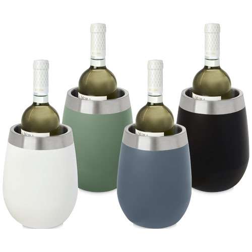 Refrigeratore per vino in acciaio inossidabile a doppia parete con strato esterno colorato. Lo strato interno in acciaio è facile da pulire e mantiene il vino fresco.