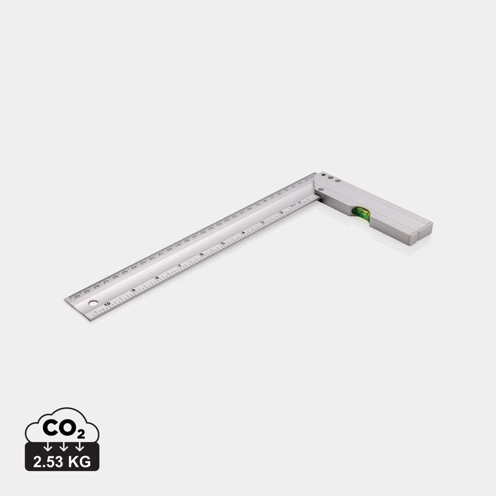 Righello quadrato professionale in alluminio con livella integrata, ottimo per misurare angoli e disegnare quadrati. Stampa fronte/retro con indicazione in cm (30) e pollici (10). Precisione livella 0,5 mm.
