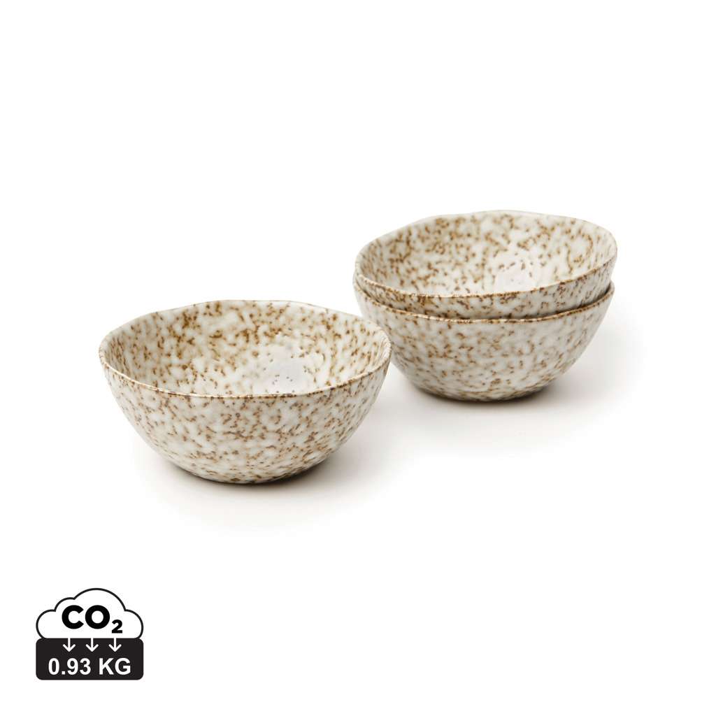 Set 3 ciotole in gres. Con le sue forme uniche, organiche e irregolari e la finitura smaltata a mano, ogni pezzo è unico nel suo genere e farà sicuramente colpo sui vostri ospiti. Realizzata in resistente gres, è progettata per durare nel tempo e resistere all'usura dell'uso quotidiano. Queste ciotole sono lavabili in lavastoviglie per una facile pulizia e manutenzione. Non possono essere utilizzate nel forno a microonde o nel forno.