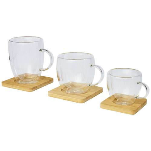 Set di 2 tazze in vetro a doppia parete da 100 ml con sottobicchiere in bambù Manti