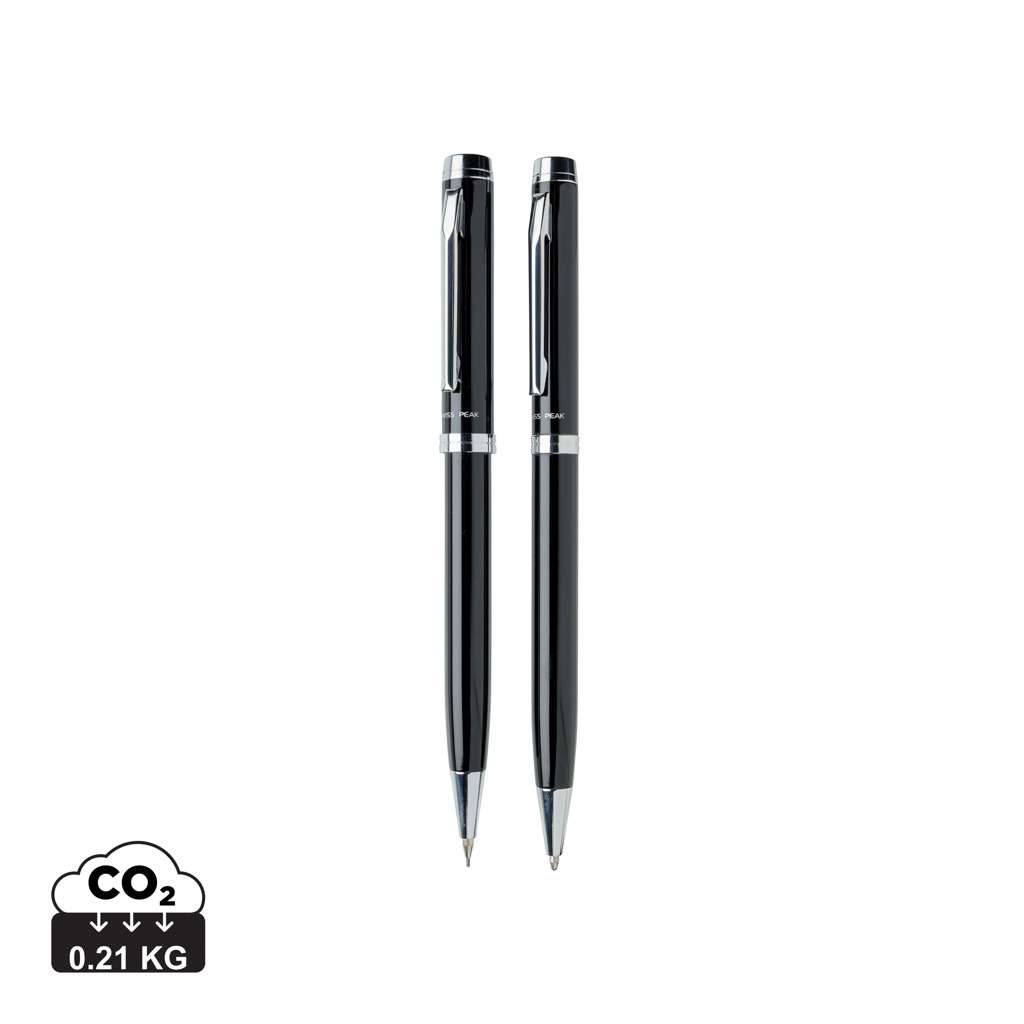 La prerogativa di questo set che include penna a sfera e matita è la qualità e l’eleganza. Refill da 1200 metri di inchiostro German ink e matita con 3 mine da 0,7 mm. Confezionata in scatola regalo Swiss Peak.