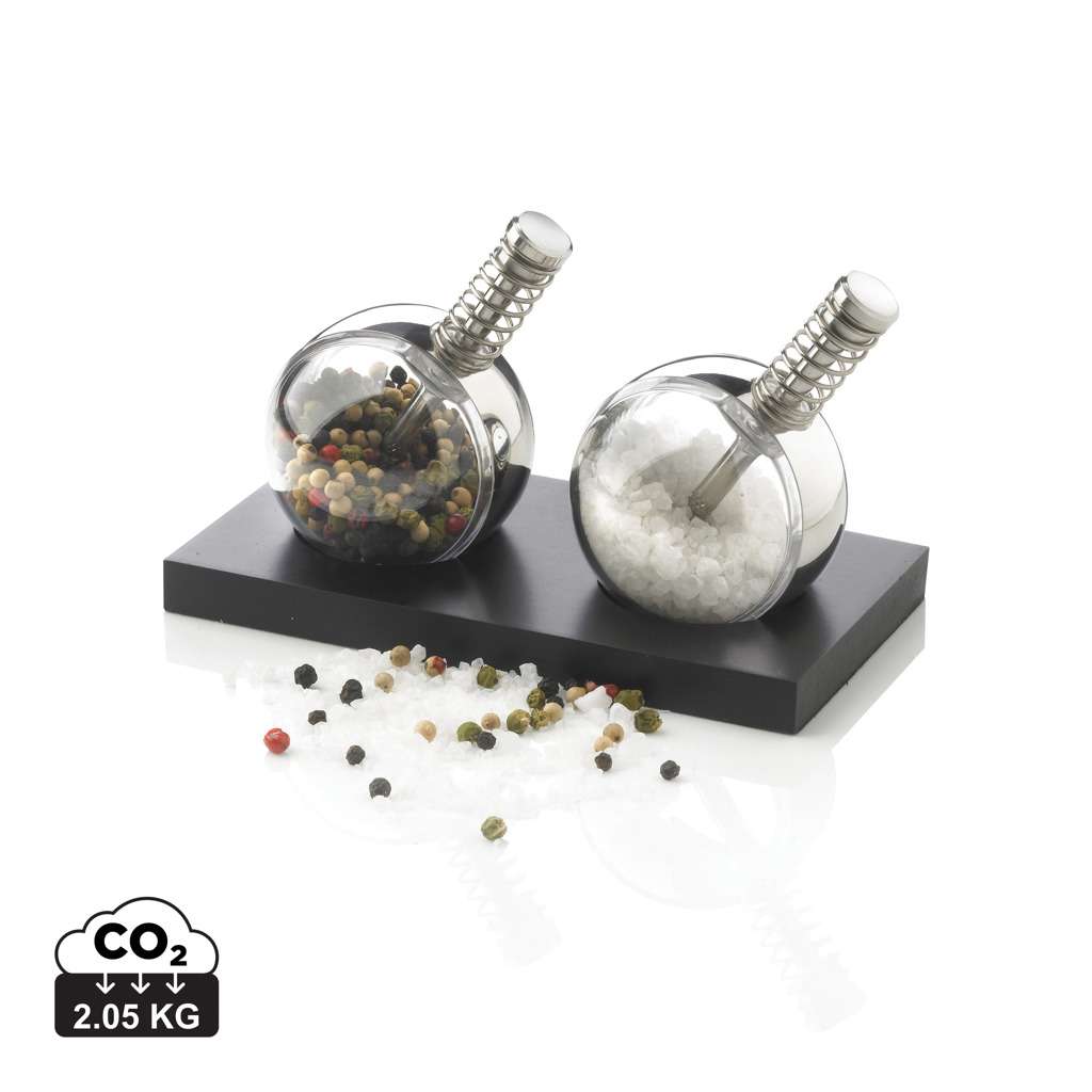 Sfere in acrilico con bordi in acciaio inossidabile, con facile meccanismo di funzionamento a molla, include vassoio in gomma e imbuto. Design registrato®
