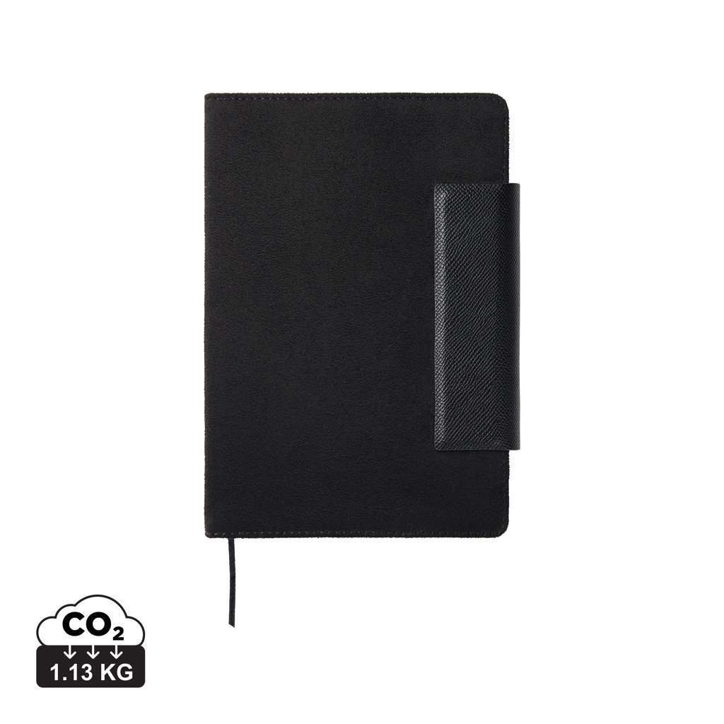Un elegante taccuino A5 composto da 160 pagine a righe (80 fogli). È l'accessorio perfetto da portare alle riunioni, per tenere in ordine i tuoi appunti con stile. Il taccuino Marlow combina un design intramontabile con finitura in ecopelle riciclata, dettagli in PU e carta riciclata. Il taccuino è dotato di una pratica ed elegante chiusura magnetica. Certificato GRS (Global Recycled Standard), la certificazione GRS garantisce che l'intera catena di approvvigionamento dei materiali riciclati è certificata. Il contenuto totale riciclato si basa sul peso complessivo del prodotto. Questo prodotto contiene il 50% di carta riciclata certificata GRS e il 6% di poliestere riciclato certificato GRS.