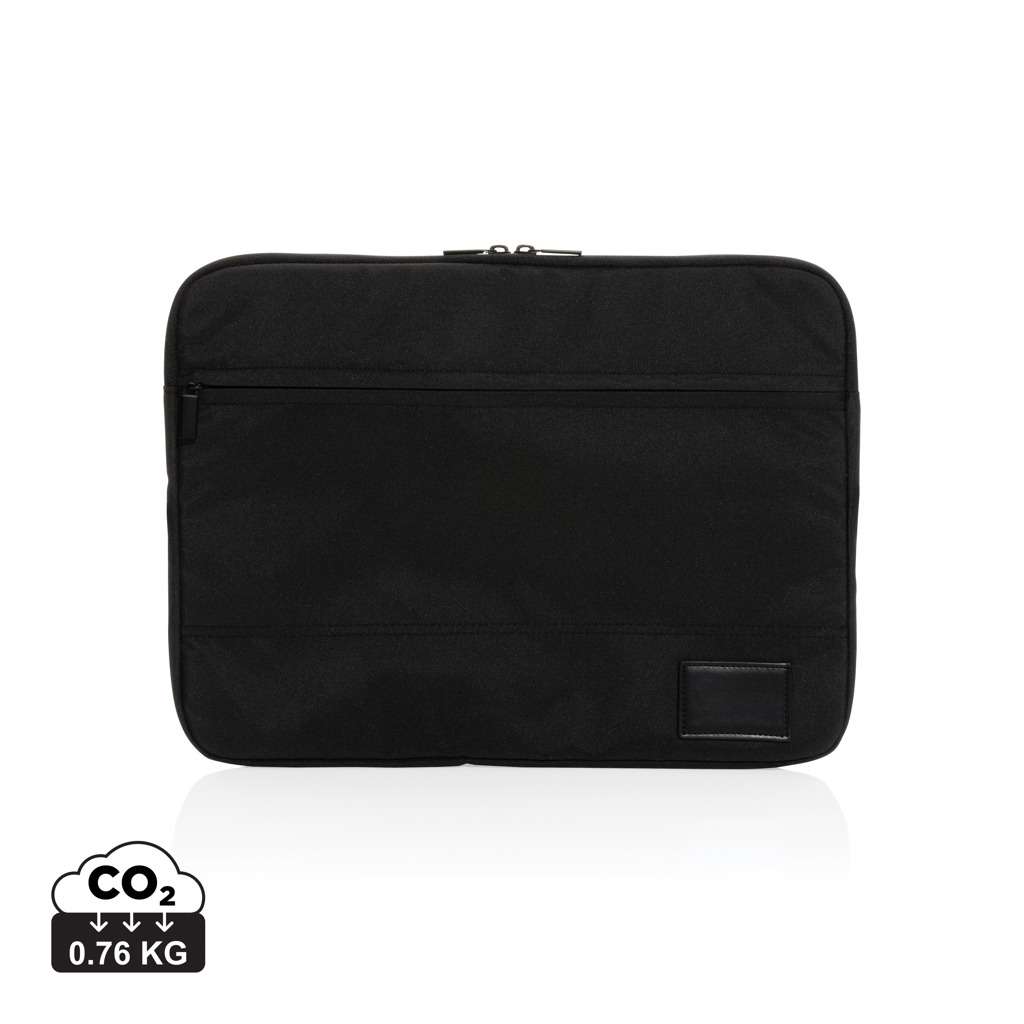 Proteggi con eleganza il tuo computer portatile da 14" grazie a questa tasca con apertura frontale dal design elegante. Realizzata in poliestere riciclato 300D. Include tracciante AWARE™ che garantisce l'uso genuino di materiali riciclati. Ogni tasca ha riutilizzato 8 bottiglie in PET. Il 2% del ricavato di ogni prodotto Aware™ venduto sarà devoluto a Water.org.
