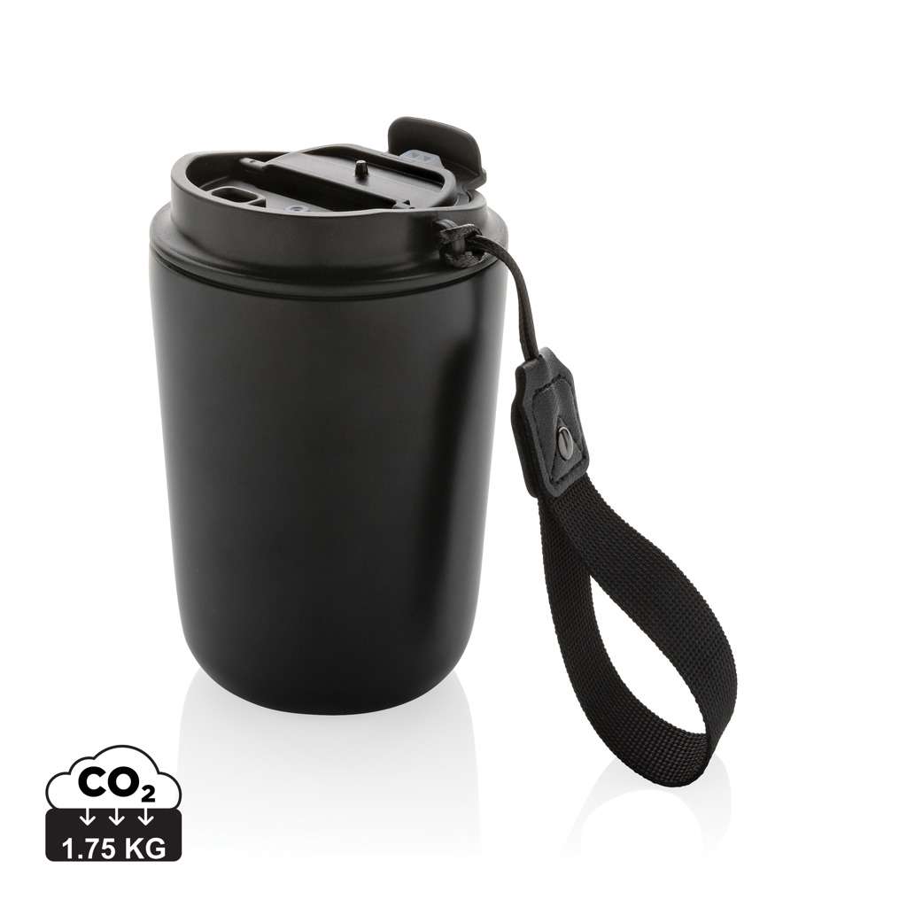 Tazza termica Cuppa in acciaio riciclato con laccio da collo