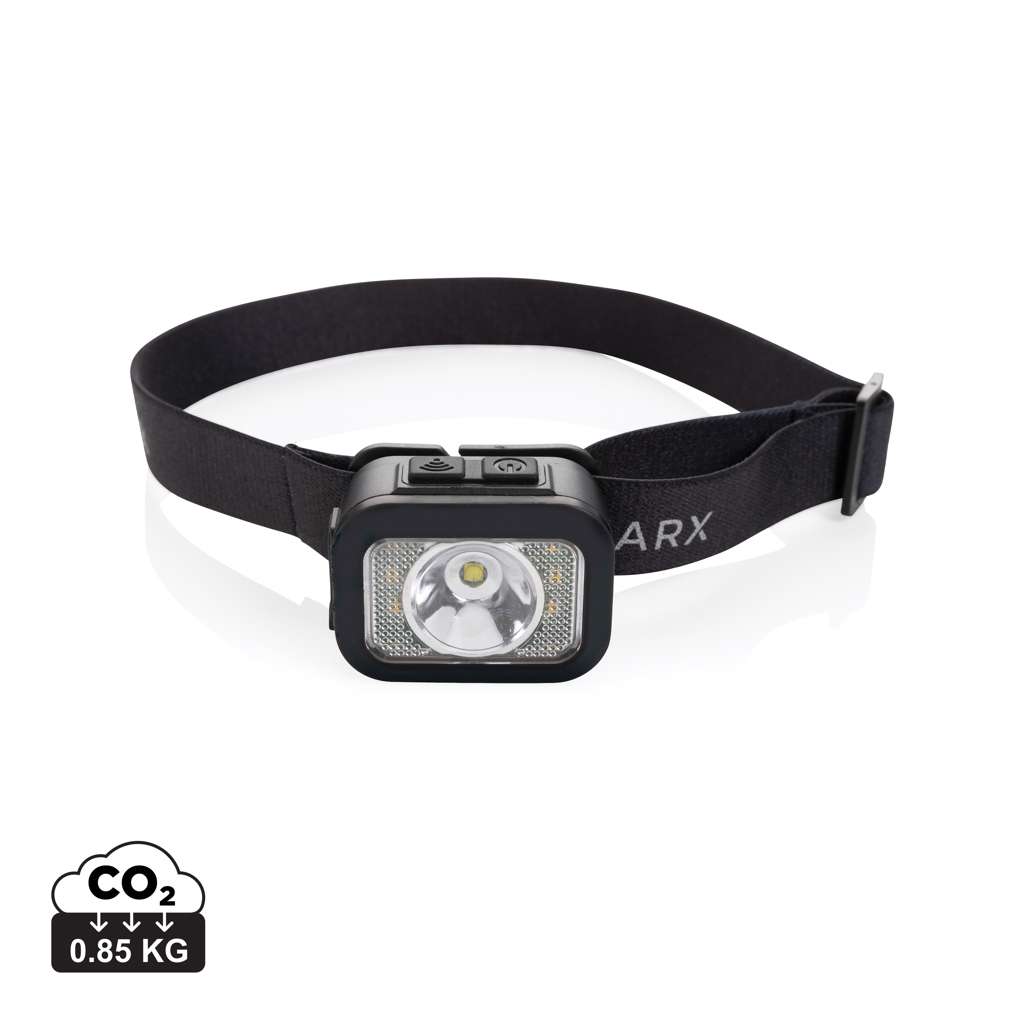 Torcia frontale per uso frequente con luce COB e LED integrata ad alta potenza. La torcia può produrre fino a 250 lumen e ha una distanza del fascio luminoso di 70 metri. La struttura della torcia è realizzata in plastica ABS riciclata certificata RCS. L'RCS (Recycled Claim Standard) è uno standard per verificare il contenuto riciclato di un prodotto lungo l'intera catena di fornitura. Contenuto riciclato totale: 23% in base al peso totale dell'articolo. E' impermeabile IPX4 e resistente alla polvere. È dotata di una fascia regolabile per adattarsi a tutte le taglie. La torcia è dotata di una batteria al litio ricaricabile da 800 mAh che consente 3 ore di utilizzo ininterrotto con una sola carica. Con 6 modalità di illuminazione, tra cui 100%-50% e modalità SOS. Facile da ricaricare tramite la porta type C.