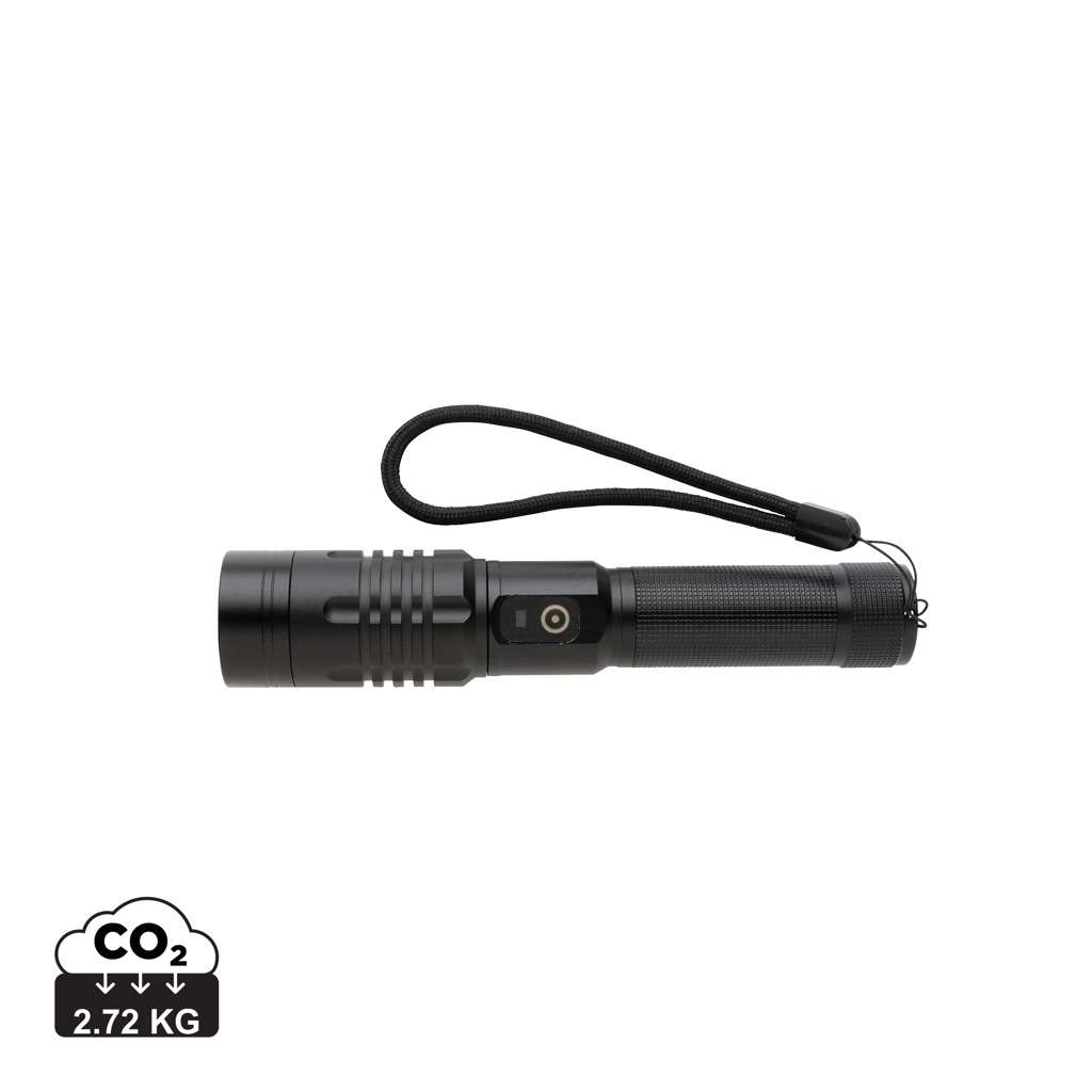 Funzionalità, prestazioni e design si uniscono in questa torcia ricaricabile. Il corpo in lega di alluminio di alta qualità si adatta perfettamente alla tua mano. La luce di messa a fuoco premium consente di accrescere la luce fino a 2000 volte. Grazie al suo grado di protezione IP4 è resistente alle intemperie, quindi può essere facilmente portata all'esterno. La potente lampadina crea fino a 1000 lumen e un raggio che arriva fino a 500 metri. La torcia utilizza una batteria ricaricabile, quindi non necessita di batterie di ricambio. È sufficiente ricaricarla tramite la presa USB. La lampadina di alta qualità è dotata di 5 modalità inclusa la funzione SOS. La batteria da 2000 mAh consente un utilizzo fino a 4 ore con una singola carica.