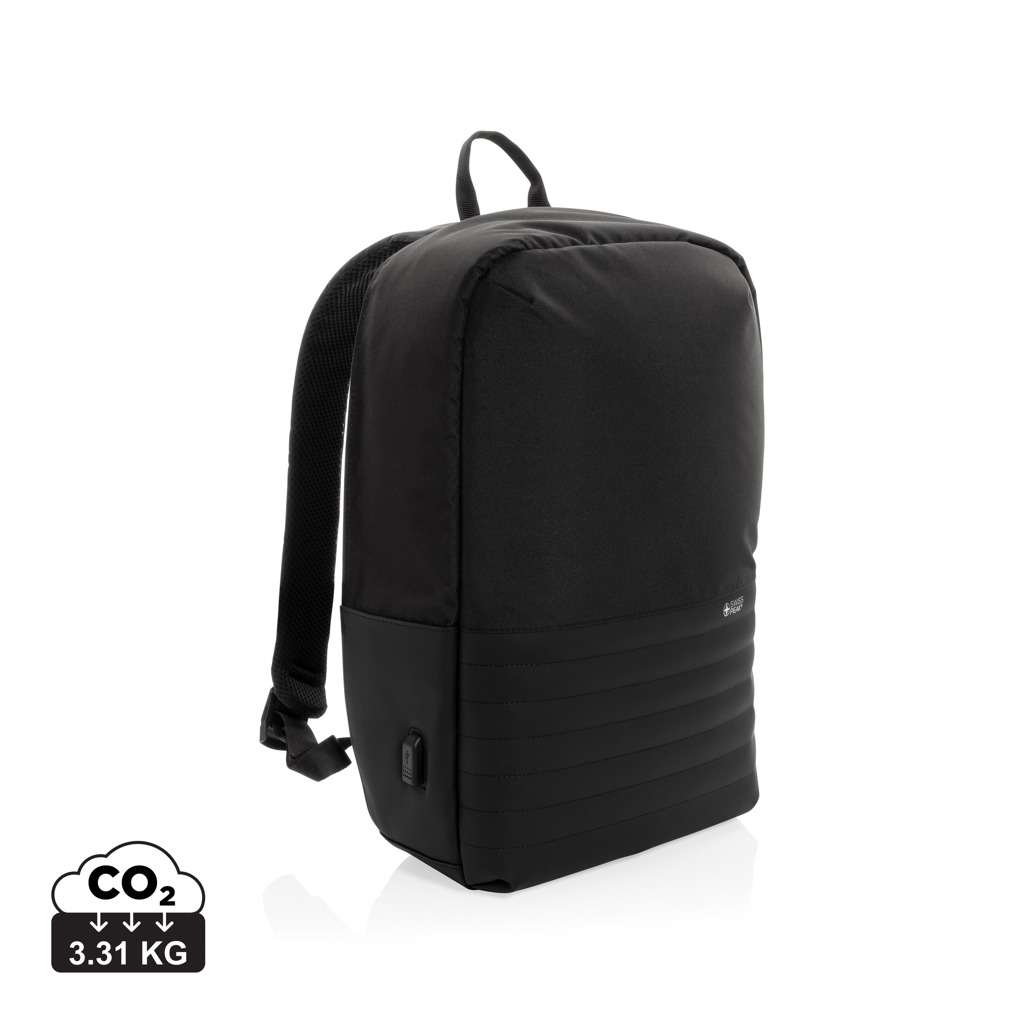 Questo zaino porta PC Swiss Peak AWARE™ da 15,6" con apertura posteriore antifurto ti consente di trasportare facilmente gadget tecnologici e oggetti personali ovunque tu vada. L'interno dispone di uno scomparto porta PC e uno porta tablet. Tasche di sicurezza RFID per portafoglio e passaporto. Collega la tua power bank facilmente alla porta di ricarica USB integrata e ricarica il tuo telefono o tablet mentre sei in movimento.Tasca posteriore nascosta di facile accesso. Include tracciante AWARE™ che garantisce l'uso autentico di materiali riciclati. Ogni borsa riutilizza 20,8 bottiglie in PET. Il 2% del ricavato di ogni prodotto Aware™ venduto sarà devoluto a Water.org. Blocco NFC (13,56 MHz).