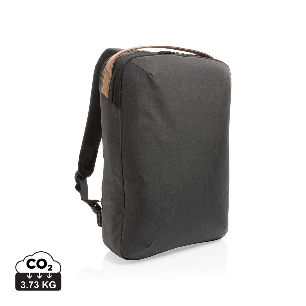 Sentiti a tuo agio sia dentro che fuori dall'ufficio con questa borsa porta PC dal design minimalista dall'aspetto elegante. Viaggia in tutta comodità con lo zaino dotato di spallacci imbottiti e pannello posteriore. Lo scomparto principale presenta uno scomparto porta PC da 15,6 pollici e due tasche con rete. Sulla parte superiore puoi trovare una maniglia in PU. Il materiale esterno e la fodera sono realizzati con poliestere riciclato. Con tracciante AWARE™ che convalida l'uso reale di materiali riciclati. Ogni zaino ha riutilizzato 9,01 bottiglie in PET da 0,5 litri. Il 2% del ricavato di ogni prodotto Impact venduto sarà devoluto a Water.org. Senza PVC.